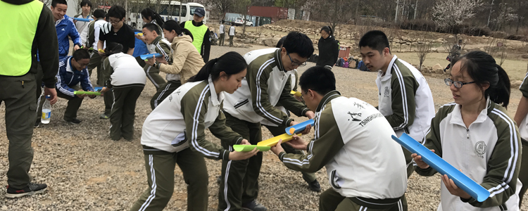 隔空取水是团结的象征,在取水的过程中,身体的任何一个位置都不可以接触地面,这就需要取水者对自己的同学有足够的信任,同学们各显其能,凝心聚力,在合作的过程中也感受到了自我超越的无限可能的力量、愤怒的小鸟、虎口脱险和征服指压板等活动都不是一个人能完成的挑战,同学们在游戏的过程中不断磨合、积极思考对策,各组配合能力得到了极大提升。