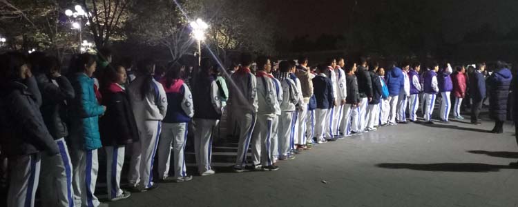 凌晨2∶50,全体师生在附中集合,乘坐大巴车前往天安门广场。凌晨3∶40到达目的地,稍事修整后,各班学生在随班老师和现场工作人员的指挥下秩序井然的通过安检,登上观礼台,静候升旗仪式的开始。