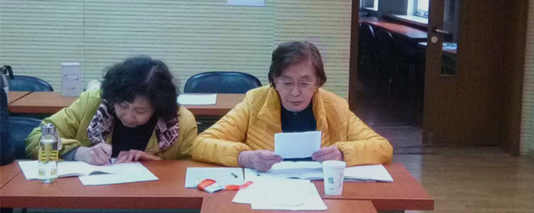 离退休第四党支部副书记陈淑华老师(中)代述职
