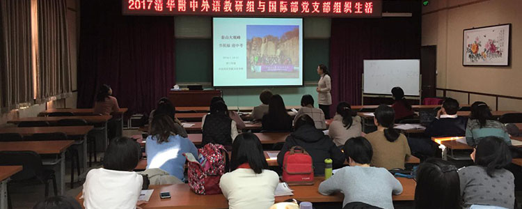 外语教研组与国际部党支部主要围绕《胡锦涛文选》学习体会与2017年寒假社会实践展开交流分享。有的党员从科学发展观出发,结合近期出台的《关于实施中华传统文化传承发展工程的意见》,阐述了两者对自身教学实践中的国学教育与传统文化教育的引导作用。“旅游品味人生;读书提炼人生;影视浓缩人生”道出了党员们寒假社会实践的精彩收获。
