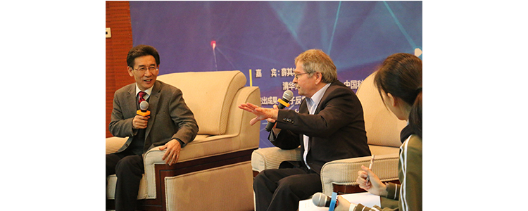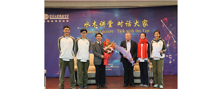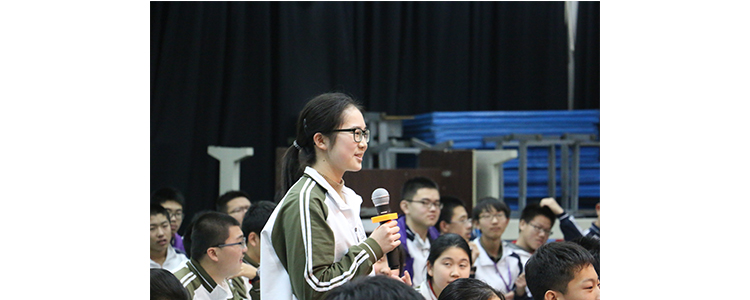 在半个小时的访谈环节结束后,台下的同学踊跃举手发言,与两位教授就刚才访谈中感兴趣的问题进行了深入探讨。最后同学们向两位教授赠送鲜花,并用热烈的掌声送别两位教授。