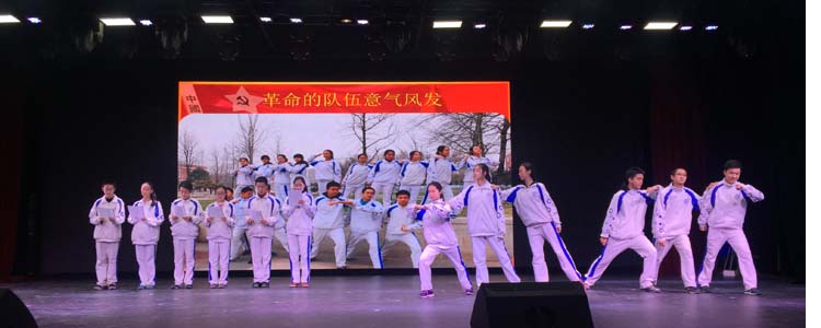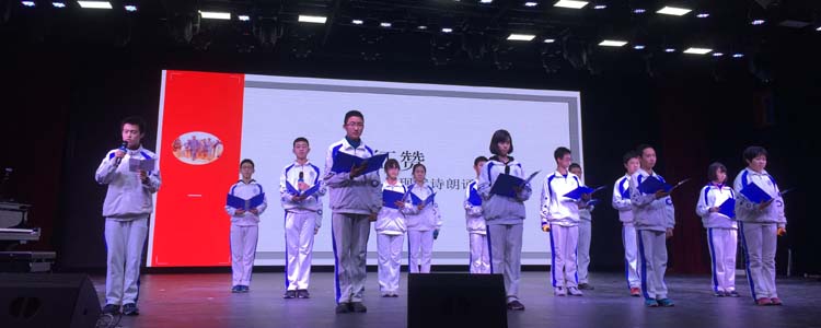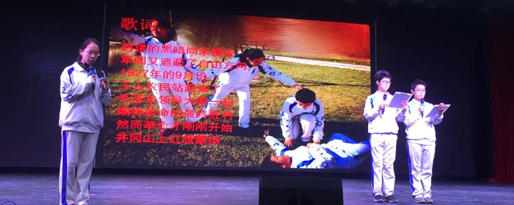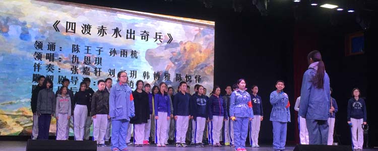 2016年12月14日下午,澳门网上博彩初15级在报告厅举行了自编、自导、自演的长征专题“诵·歌”汇报演出活动。初15级年级组长张彪、初15级全体班主任、语文备课组全体老师、及初15级全体同学共600余人参加活动。