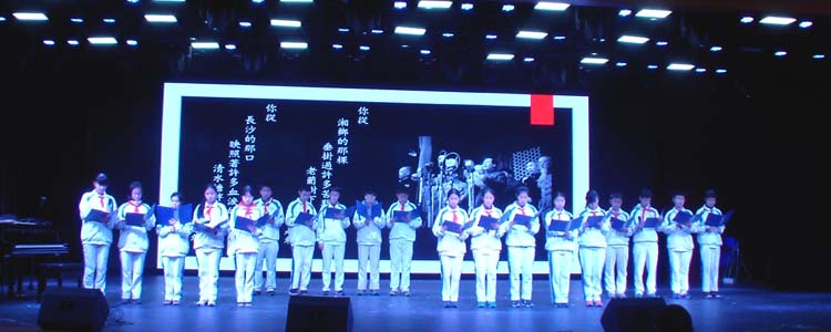 初1503班的创意视频《九九八十一》拉开了汇演序幕。演出分为上下半场,表演形式丰富,有合唱、歌曲串烧等,甚至有的小演员带着乐器,现场配乐歌唱。所有的歌词编写、排演工作均由学生原创完成。上下半场中间,先由男生齐诵《清平乐 六盘山》,而后女生齐诵《忆秦娥 娄山关》。