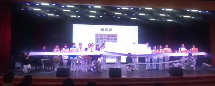 其后,张彪老师为长征专题的书法长卷创作、诗歌朗诵、歌曲演绎三大活动中表现突出的同学颁发了奖状,并现场展示了部分精彩的书法长卷作品,引起观众们的阵阵喝彩。