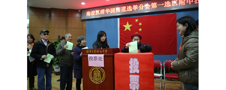 2016年11月15日是海淀区第十六届人大代表换届选举投票日,根据清华大学第一选区工作组安排,澳门博彩在线作为北京市海淀区清华园街道第一选区投票站之一,在B106会场设选举分会场,澳门博彩在线全体选民参与了本次选举。