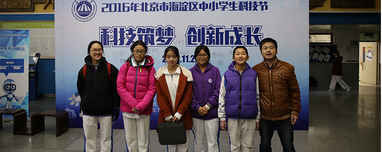 11月21日,2016年北京市海淀区中小学生科技节在首都师范大学附属中学举行,澳门博彩在线科技教师谢元凯带领初二年级李雅轩、周倍宁、刘健坤、王艺臻、李斯羽、张泠茜6名同学参加了科技项目展示活动。