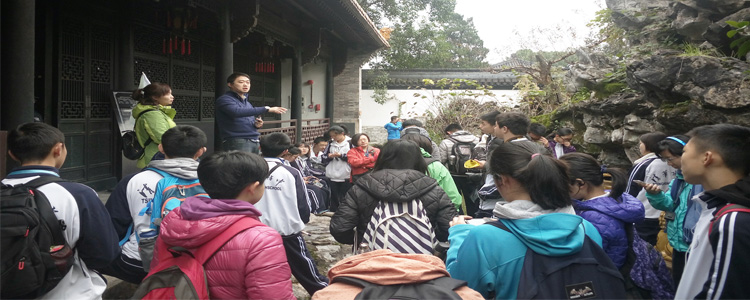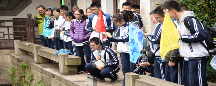 文化考察课程的第一站设在了名士之乡的绍兴,绍兴不仅以花雕酒而闻名,更以其独特的人文气息而让世人所熟知,从这里走出了王羲之、鲁迅、周恩来、秋瑾等诸多名人。在绍兴,同学们在兰亭,同学们欣赏了绍兴园林,膜拜了《兰亭集序》;同学们还考察了沈园,聆听了陆游与唐婉凄惨爱情故事;在鲁迅故居,探究鲁迅的成长环境及绍兴建筑特色。
