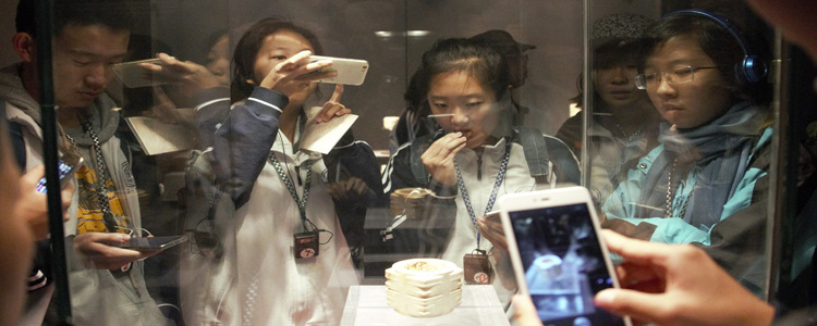 学生被良渚文化中的玉文化深深吸引(图中为玉琮)