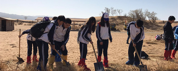 9日,高一两个班级师生来到了腾格里沙漠东南一角的沙坡头,感受西北的广袤。在导师的指导下,学生们学会了扎麦草方格来固定流沙夯土。高二两个班级上午到达穆民新村,感受回民习俗文化;下午参观了西夏王陵,学生们在西夏博物馆里探寻西夏王国的历史踪迹,一个个生动的西夏人物塑像再现了西夏王朝的兴衰历程。帝王陵园的参观,学生们感受到宏伟壮观的陵城布局清晰可辨,高大的黄土陵台在贺兰山下熠熠生辉。