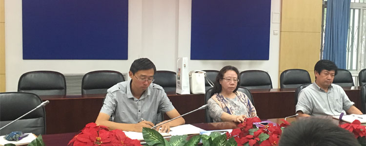 参会领导(左起,王田、杜毓贞、白雪峰)认真听取实验室相关教师的发言