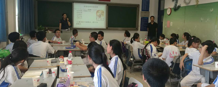 首先,沈艳辉向同学们细致的讲述水对于生命的意义,用大量的实例讲述了科学饮水,健康饮水对我们身体健康的重要作用。为了让同学们更科学的选择健康饮料,沈科长对超市里琳琅满目的饮料做了分析,将饮料的制作过程,食品添加剂的成分,对人体的益处和危害做了细致的分析,同学们听得聚精会神,不时发出惊讶之声。