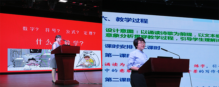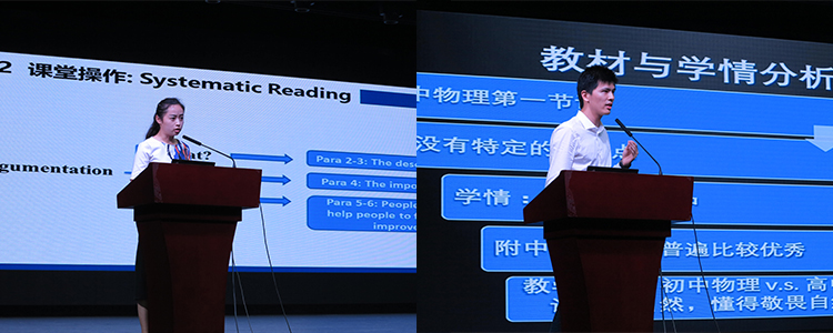 在新教师们的说课展示中拉开帷幕,说课的老师有数学学科彭玉梅老师、语文学科王庆超老师、英语学科赵璠老师、物理学科陈子涵老师、地理学科姚佳老师和体育学科张玉婷老师,他们通过对教学设计的核心展示,展现不同学科的风采,集中展示了几天的培训中新教师的积累和成长。