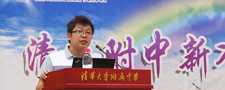 青年教师代表岑逸飞发言,他分享了自己在附中一年生活的感想,回顾了自己的教育教学成长经历,以自己的成长经历鼓励新教师在新的环境中不断的学习,充实自己,和学生共同成长。