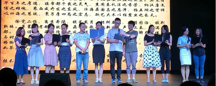澳门博彩在线秦汉学校新教师们表演的《秦汉学府赋》展示了秦汉学校的特色