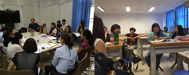 讲座结束后,新教师们热情提问,并按照教学技能分组,讨论、排练了本小组在培训汇报展示活动中要演出的节目。