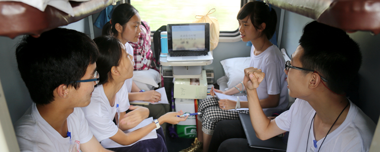 8月12日,支教团全体成员踏上回京归途。回行途中,大家充分利用时间,分组讨论,总结多日成果、撰写反思总结。文案组、摄影组成员还集中收集了多日来的文字、照片、视频材料,为接下来的校园电视台新闻编辑、成果册汇编积累素材、奠定基础。