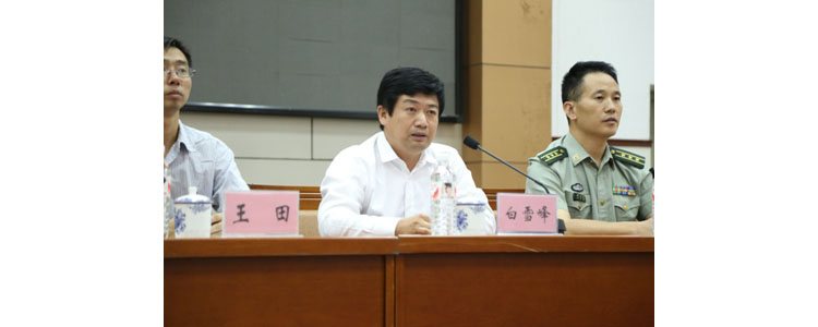 白雪峰副校长(前右)向部队授旗