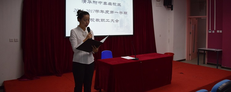 本次会议以奥森校区成立一年来全方位教育教学工作和丰富多彩的校园生活展示为开端,接着由张姝敏副校长部署新学期工作任务和动员,分别从教育教学、全员德育和教师队伍建设三大方面进行深入阐述,提出校区所承担的“统筹二项目”在探索教育改革道路上任重道远,大家应上下齐心、排除万难、奋发进取,努力促进社会教育均衡化,将奥森校区打造为同类项目的典范。