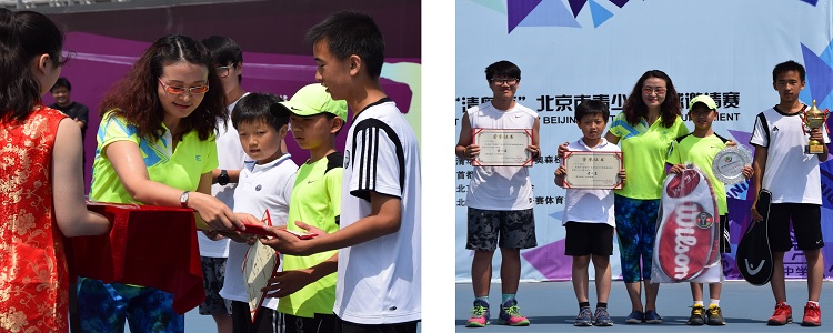 北京世奥森林公园开发有限公司副总经理翟胜利(右图右1)为获奖选手颁奖