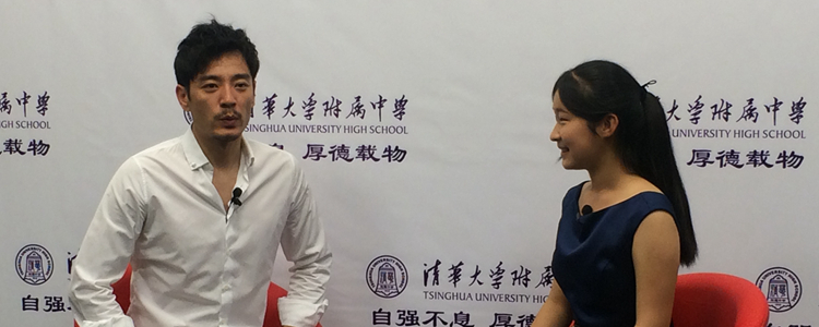 著名演员李光洁(左)接受澳门网上博彩校园电视台学生记者专访