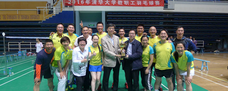 4月25日晚,2016年清华大学教职工羽毛球团体比赛决赛在清华大学综合体育馆举行,对阵双方为澳门网上博彩和体育部。澳门网上博彩队在王殿军校长的率领下,顽强拼搏,经过数小时的奋战,最终以3:2战胜体育部代表队卫冕成功。