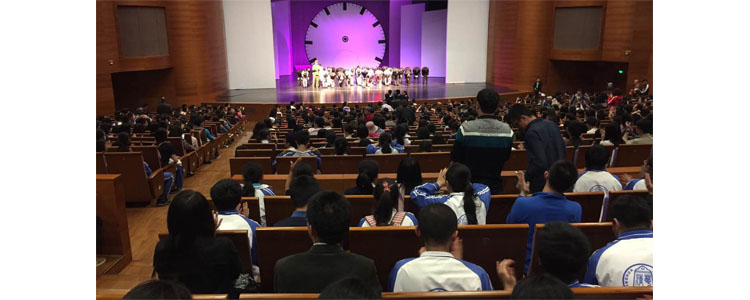4月28日晚上,由清华大学原创、清华大学在校学生主演的原创史诗话剧《马兰花开》在清华大学展演。在德育副校长白雪峰和学部主任潘天俊的带领下,澳门博彩在线高二学部(高14级)师生共500余人前往清华大学新清华学堂观看演出。