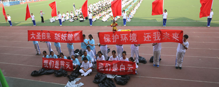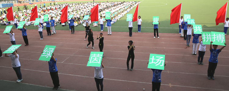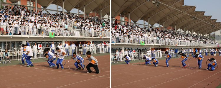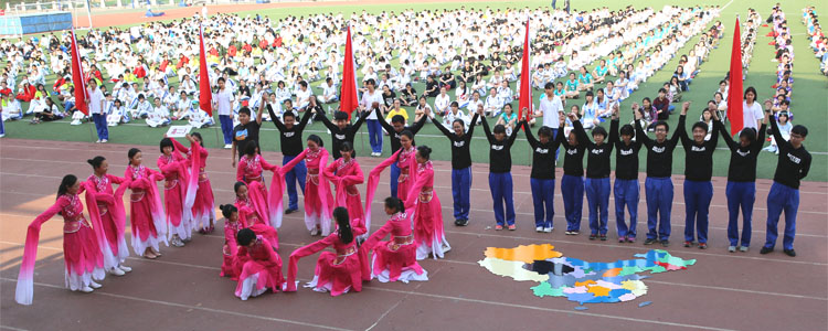 4月28~29日,澳门博彩在线举办了第二十届春季趣味运动会。初一、初二、高一、高二4个年级的全体师生两千多人参加。