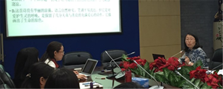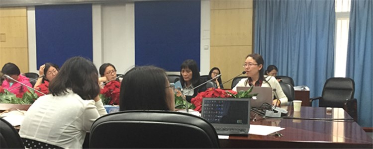 语文备课组长陈冬梅老师(右1)进行期中总结