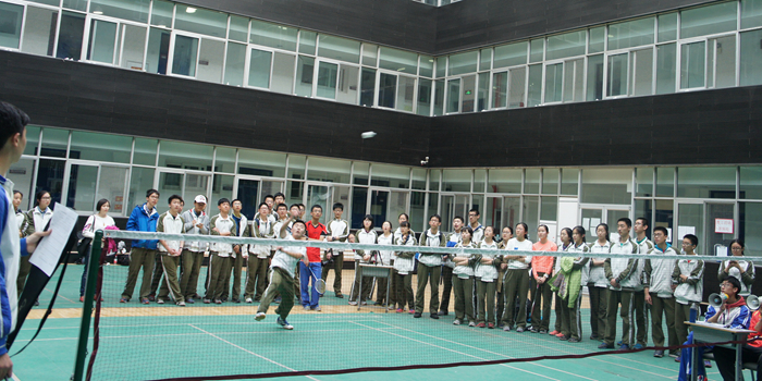 2016年4月10~16日,澳门网上博彩高15级羽毛球联赛决赛圈比赛在学校D座羽毛球场举行。最终,高1514班王健丰同学获男子单打冠军;高1503班闫淳溪同学获女子单打冠军;高1503班姚以升、闫淳溪组合获混双冠军;高1503班获团体总分第一名。