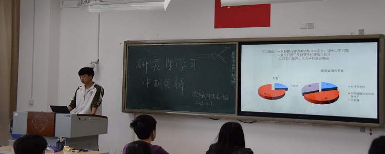 4月7日下午,澳门网上博彩奥森、将台路校区举行2015-2016学年度研究性学习中期答辩会,答辩会在奥森校区阶梯教室和高15级各班教室举行,高15级220余名学生和25名指导教师参加了答辩会。