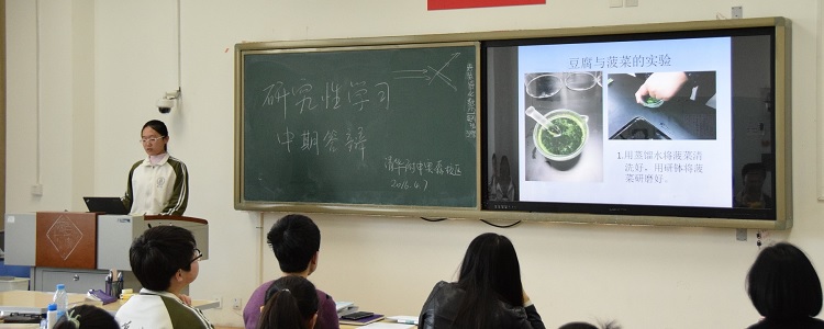 奥森、将台路校区研究性学习项目开展以来经历了启动大会、开题答辩会和小组研讨会。学生们凭着对研学课题的浓厚兴趣,在指导教师的带领下,已经进入到项目实施这个重要阶段。学生们在前几个月的时间里组织进行小组的文献搜集和阅读,开题之后又进行实验材料的准备,实验操作,数据的收集和分析,分析课题难度和所存在的问题。各个小组的汇报大致分为以下四个部分,分别是前期对课题思考研究的总结和目前阶段存在的问题以及取得的成果和下一步的学习计划。各小组的指导教师分别指出学生们目前存在问题的建议和接下来的攻克重点。学生们热情积极、对本小组的课题研究充满兴趣和信心。