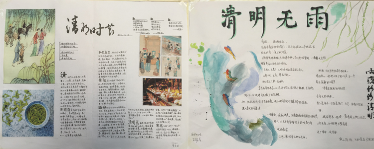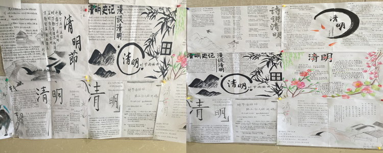 学生们在语文老师的指导下,利用清明假日期间阅读与清明相关的文章,了解清明由来和文化习俗,收集整理相关资料,撰写并制作以“清明”为主题的手抄报。到校后,高一语文组的老师们对各班遴选的优秀手抄报进行评选并展示部分获奖作品。