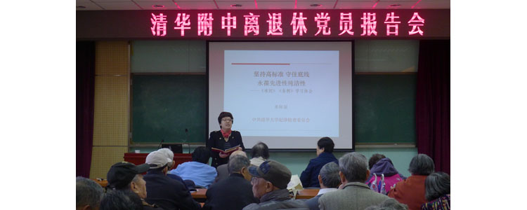 3月24日,澳门网上博彩党委在培训楼二楼举办离退休党员报告会,邀请清华大学纪委副书记监委副主任单际国老师做题为“坚持高标准,守住底线,永葆先进性纯洁性”—《准则》《条例》学习报告。澳门网上博彩离退休党员50余人参加了会议,附中党委副书记张洁主持会议。