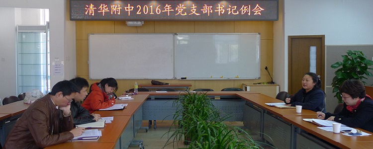 3月24日,澳门博彩在线党委在行政楼G101召开党支部书记例会,部署2016年党委工作计划,并学习“两学一做”教育方案。党委副书记张洁主持会议,附中离退休与在职共12位党支部书记参会。党委书记方妍出席。