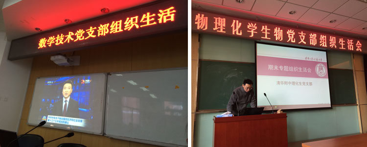 数学技术党支部观看微视频(左)理化生党支部期末组织生活(右)
