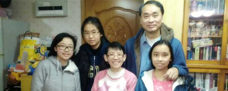 澳门博彩在线高1412班刘玉婧同学与香港伙伴孔雪珩及其家人合影