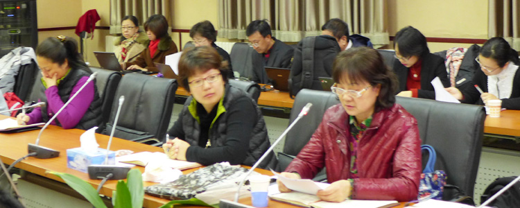 高三学部主任张小英老师(前右一)主持会议