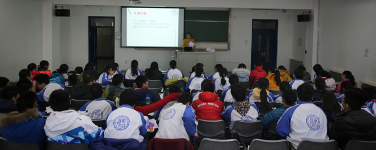 行前讲座分为三个环节。第一环节集中培训。主会场在三层报告厅,其他会场同步转播。集中培训由学生发展中心王敏老师主持,白雪峰副校长首先致行前动员词,他阐述了考察课程的意义,鼓励同学们多走多看多思考。随后“走进圆明园”课程的三位老师宋薇、张馨月和谷丰分享了在圆明园课程中如果将实地考察和问题思考相结合,做到真正的边看边研究。