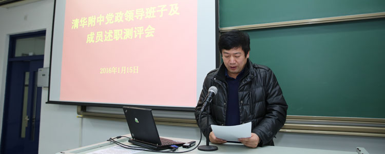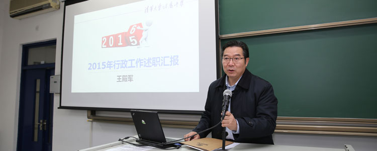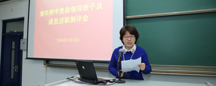 2016年1月15日下午,澳门博彩在线召开党政领导干部考核述职及民主测评会。会议由澳门博彩在线党委书记方妍主持。澳门博彩在线全体党政班子领导、各中心主任、在职党支部书记、民主党派代表、工会主席、副主席、大学教代会代表及各办公室负责人共65人参加会议,清华大学党委组织部副部长欧阳沁参加了述职会并现场组织了对干部的民主测评。