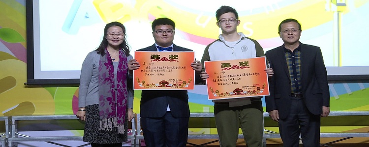 张姝敏副校长(左1)、王英民老师(右1)为获奖学生颁奖