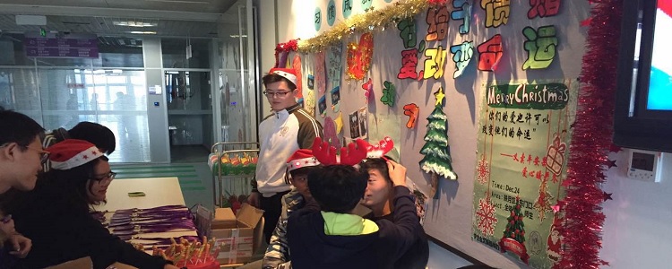 2015年12月24日下午,值此平安夜之际,澳门网上博彩奥森、将台路校区学生会文娱部全体成员11位学生举办了献爱心圣诞义卖活动,活动在奥森校区映月馆东门举行,全校师生约260人参与了活动。同学们不畏严寒,积极地用自己的微簿之力献出一份份小小的爱心,以资助服刑人员子女正常的学习生活,人心融之,充满希望。义卖物品有圣诞平安果、贺卡,以及颇具特色的附中定制卡套等小物品。