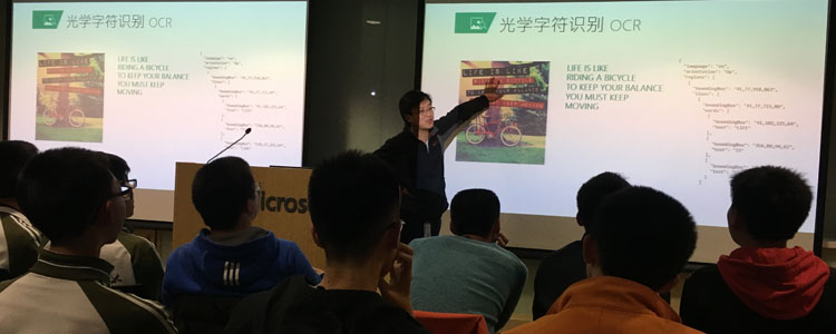 接下来,微软的一位项目经理介绍了他参与的项目的具体情况,例如,识别图片中的人脸、文字等。同样使师生们受益匪浅。