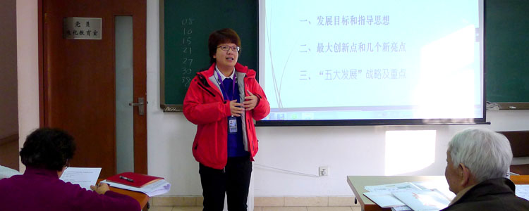 张洁副书记在讲话中强调了举办学习讲座的必要性,并向老同志们致以亲切的问候。王锡祥老师讲述了这次会议的主要任务,介绍了专题讲座的内容要点。随后,大家一起收听国家行政学院政策咨询部王小广同志所作的“‘十三五’规划的新理念、新思路、新举措”报告。报告从“发展目标和指导思想”,“最大创新点和新亮点”及“五大发展战略及重点”3个方面论述,深入阐释了“十三五规划”的主要精神。