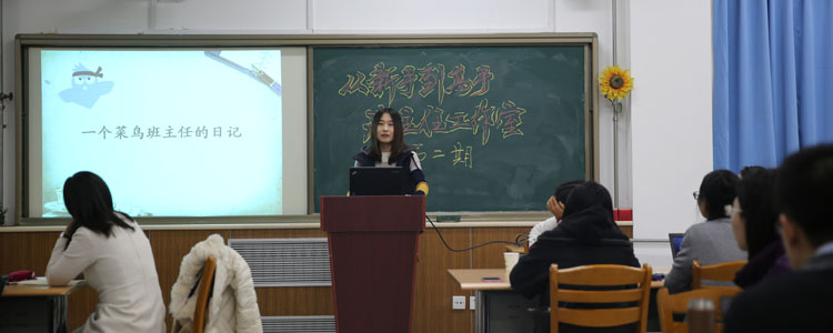 本期班主任工作室活动主题为“从新手到高手”。活动伊始,白雪峰副校长为大家解读了本期主题的含义,之后,上期班主任工作室成员那妮做题为“一个菜鸟班主任的日记”的报告,和大家分享了自己的学习成果和作为一名新班主任的心路历程,令在座的青年班主任感同身受,也从中找到自己可以借鉴的经验。