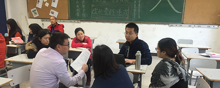 随后,全体教师按照所教授的不同班型分为五个小组,针对“本组类型班的整体定位及基本情况”、“目前出现的德育问题”、“造成问题的原因、有效对策”、“如何进行持续教育”等问题展开讨论,旨在通过研讨,制定出年级德育教育方案及措施。讨论环节之后,各小组由一位老师进行总结发言。