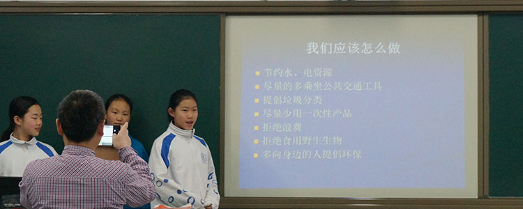 对于其它几条倡议,同学们也提出了具体的措施:如厨余垃圾单独放,能回收的纸箱、塑料等都回收,尽量不用一次性纸杯、筷子,住旅馆自带洗漱用具等等。最后,同学们发出号召:为了人与自然和谐共存,请让我们携起手来,共同保护我们这个唯一的家园!