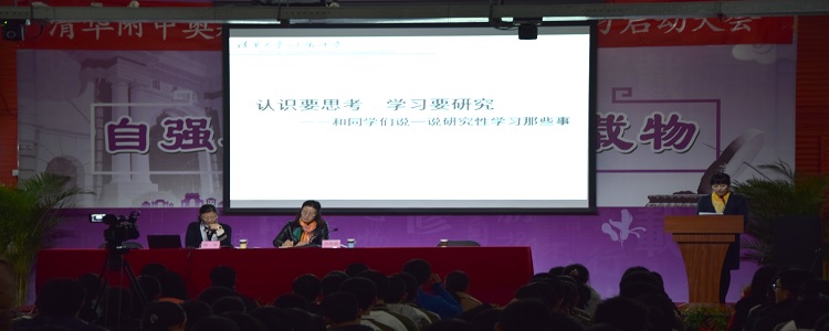 2015年11月19日下午,澳门博彩在线奥森、将台路校区高15级学生研究性学习项目在奥森校区学生公寓正式启动。教育教学副校长张姝敏、澳门博彩在线资深生物教师韩星及高15级全体师生260余人参加了启动仪式。