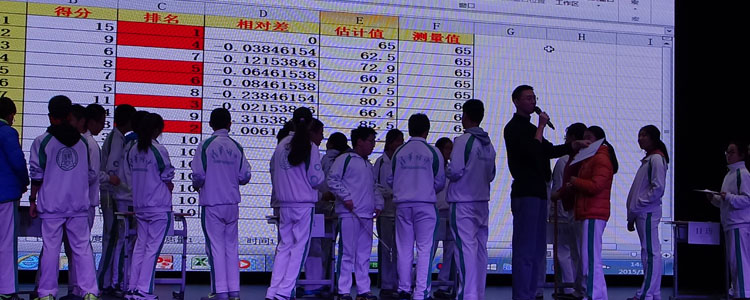 11月26日下午,澳门博彩在线初14级在食堂三层报告厅举办学科特色活动——“方寸之间、感受科学”之物理估测大赛。活动分四项内容进行——估测长度、估测质量、估测温度和估测时间。初14级全体同学参加活动。每个班分别根据四个竞赛项目,选出16名同学代表本班参加比赛,并根据同学估测值的相对误差进行排名,排名取前八名,分别给予一定的分数奖励,最后算出总分。
