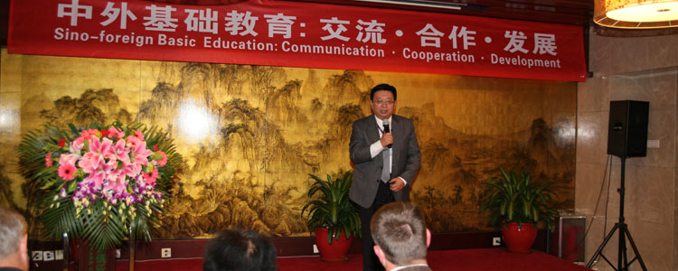 人民大学附属中学周建华书记回顾了本校国际部这几年课程的开发和学校发展过程,感谢其他国际学校对本校提供的支持和帮助,表达了一直坚持的“融注中外精华,坚持综合创新”的学校宗旨,最后提出“和而不同”的国际办学理念。