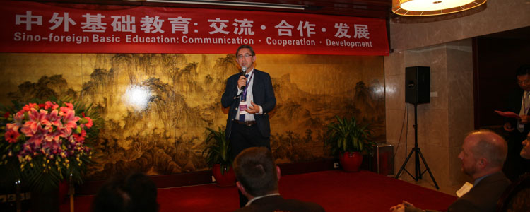 英国惠灵顿中学校长David Wilson的发言中表示海外留学成为新的趋势,因此文化交流是必不可少的。在该校英国校区有10%的学生学习汉语为未来面向世界打下坚实的基础。最后,他提出教育应更多是文化、精神以及对人的培养。